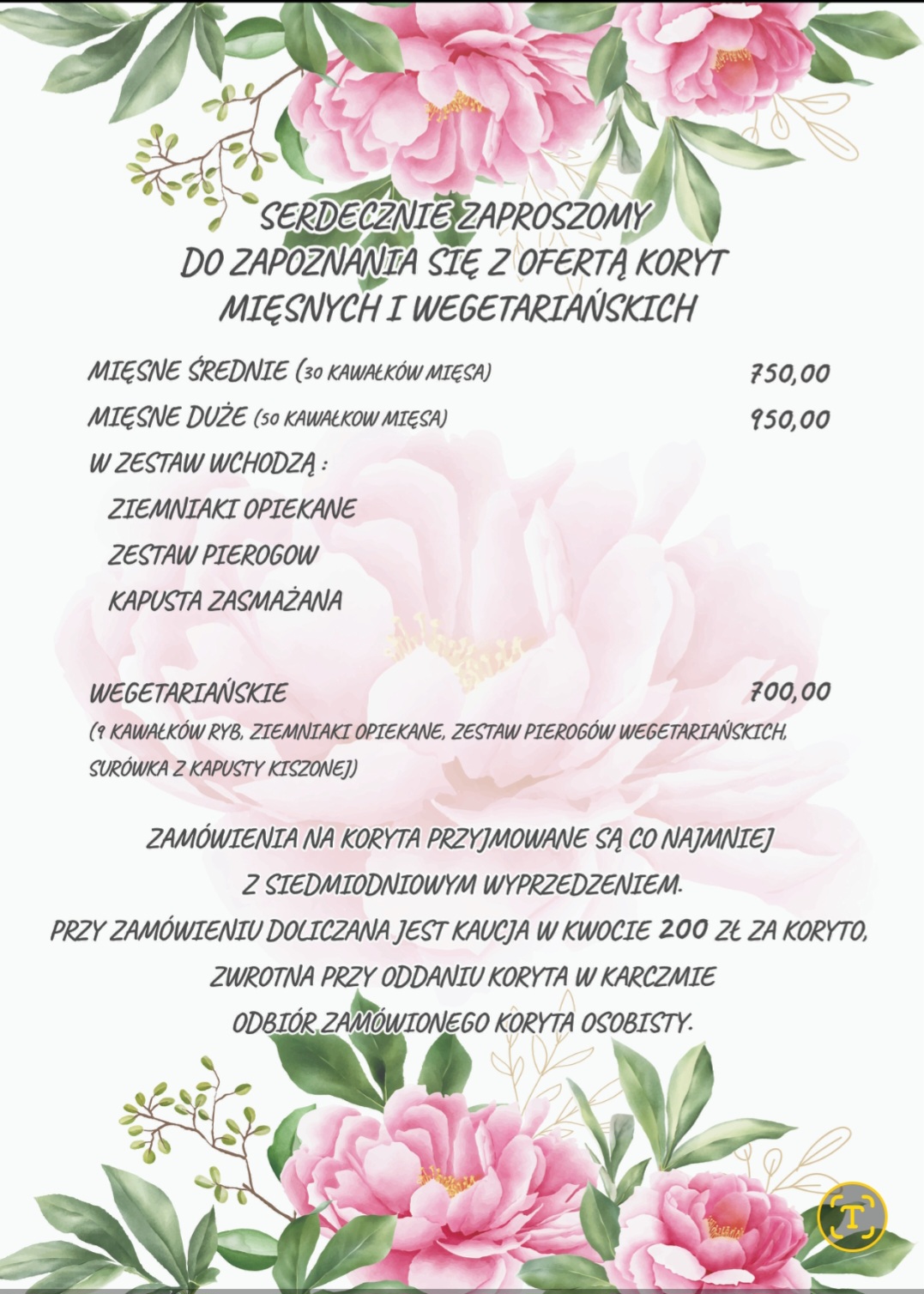 P.s każde koryto zawiera zestaw mięs(mix),ziemniaki opiekane,kapustę zasmażaną oraz zestaw domowych pierogów...