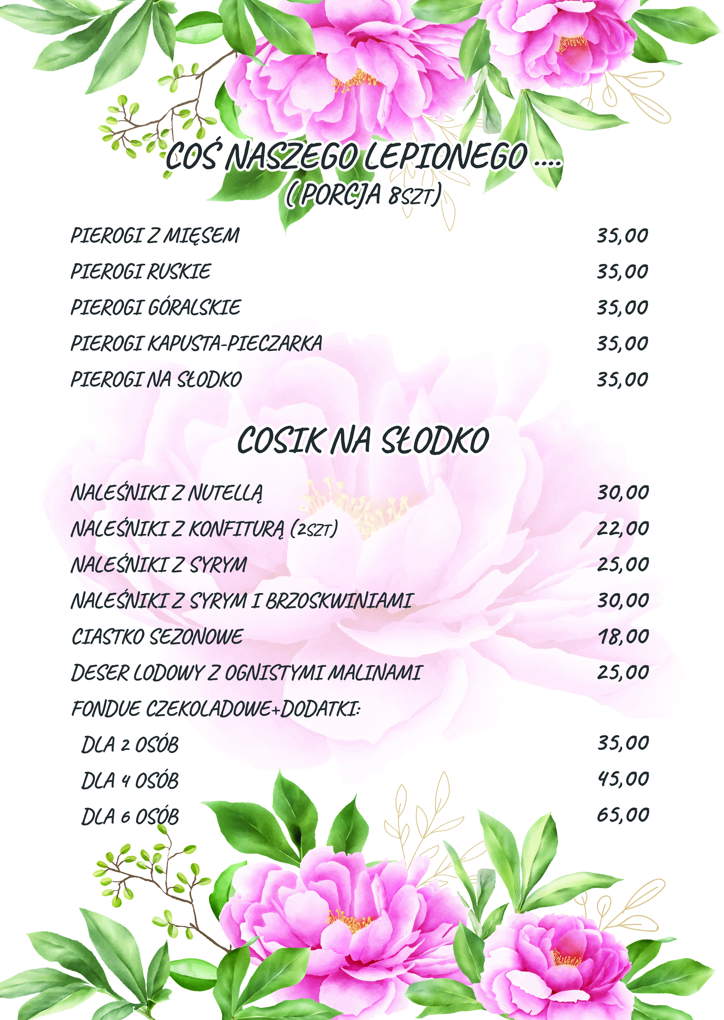 Bogate menu od pysznego obiadu,aż do kolacji...